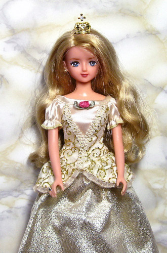 ドレスはバービーのゴールドプリンセスです。今回は登場していませんがティアラもついています。