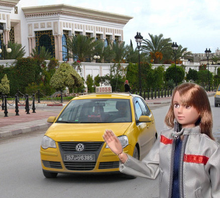 海外のどこかでタクシーに乗ります。