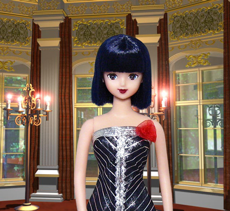 スージー誕生日2014 キャスコレ16スージー@ 2009AWパーティ黒銀斜め縞ロングドレス 部屋・窓際