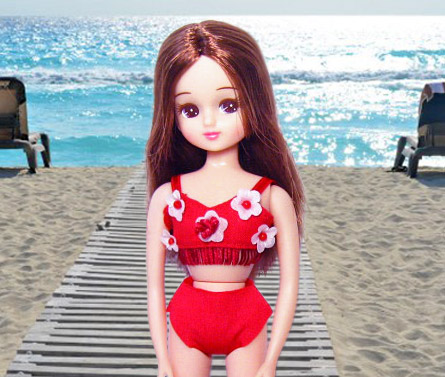 ハワイアンズリカちゃん・タヒチアンダンサー@デフォ服メキシコ・カンクン・砂浜・ビーチ・海・リゾート