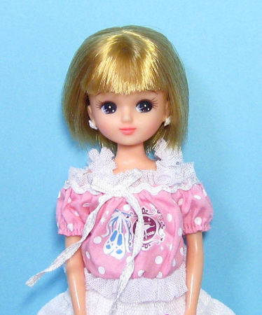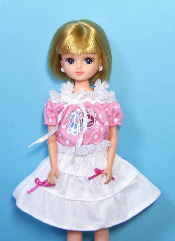 昭和リカちゃん@バレエ柄ピンクトップス+三段白スカート