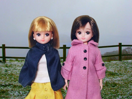 昭和リカちゃん+女子美リカちゃん@リーメント ドーリーファッション クラシカルデートスタイル+ピンクコート 霧の洞爺湖・冬・北海道