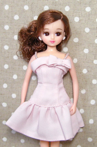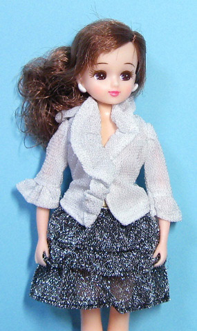 昭和リカちゃん@バレエ柄ピンクトップス+三段白スカート