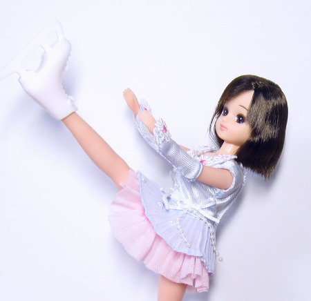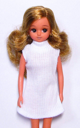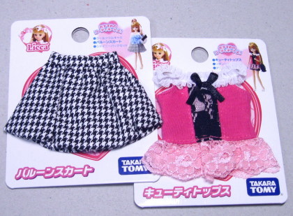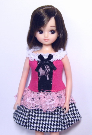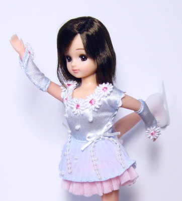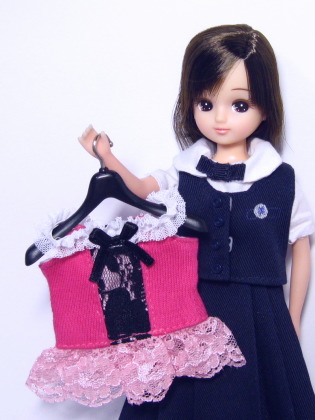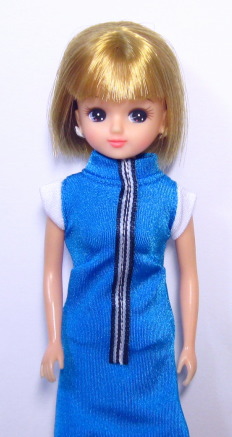 リカちゃんが着ている青いワンピースは服のガシャポンで出たものです。