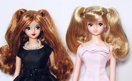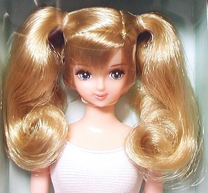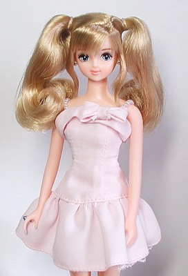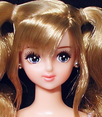 ファッションジェニーJ2のワンピースに着替えました。とても綺麗なブルーの目です。 2テール2人。メモ:髪型…ツインテール。向かって右分け・前髪あり。髪色…ブロンドボディ…白肌AGボディメイク…アイシャドウは茶系、チークはオレンジ系、目はブルー系、口紅は淡いオレンジ+パール。