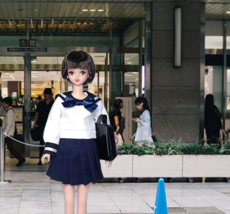 月間たまきにファッションコレクションのセーラー服を着せました。通学カバンは女子美リカちゃんのものです。