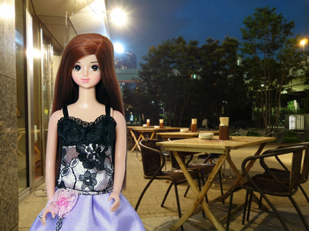 夜のオープンテラスで食事します。
