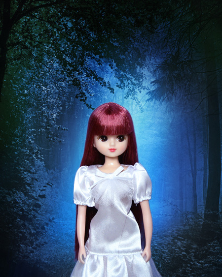 教室リカちゃん(ワイン髪)@デフォ服 夜の森・青・夜景・光