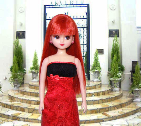 教室リカちゃん(赤髪)@2009AWパーティ赤黒ドレス 石段・屋敷・扉・洋館
