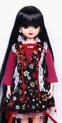 S-月間黒髪リカちゃん、ハンドメイド通販で購入した編み上げワンピセットに着替えました。