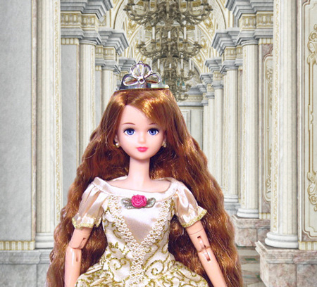バービーのゴールドプリンセスのドレス+ティアラです。
