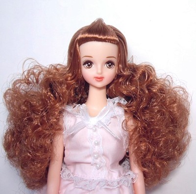 縦ロールをほどいた状態のヘッドをお迎えしてブロンドに再植毛し、お湯パーマでソバージュにしようと思ったら大失敗…。