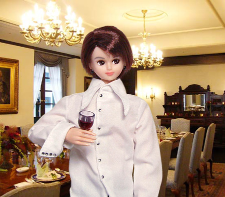 キャスコレ20キサラ@アゾンメンズツバメ襟ブラウス白 リーメント 居酒屋ぷち呑み ワイン 西洋風・豪華・食卓・室内