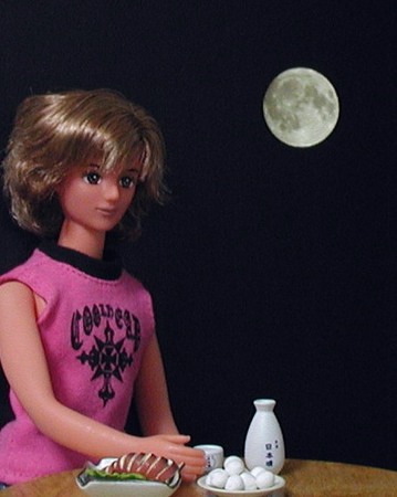 縁側にちゃぶ台出して月見酒。風邪引きそうな格好ですが(笑)。