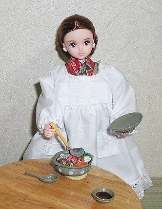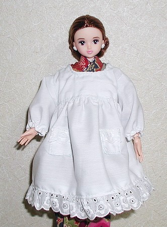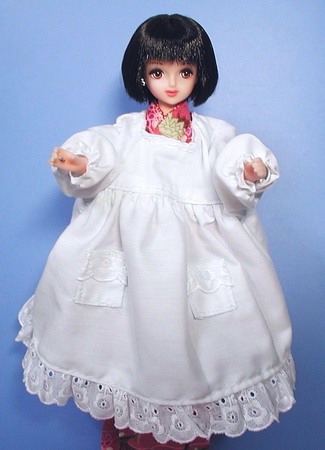 以前から割烹着を作りたいと思っていたところ、ノアドロームに27cmドール用の型紙がありました。(^^)