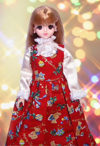 クリスマス柄のワンピースはオークションで買ったハンドメイド品、中に着ているブラウスは2010年度版ハロウィンドレスセットの物です。