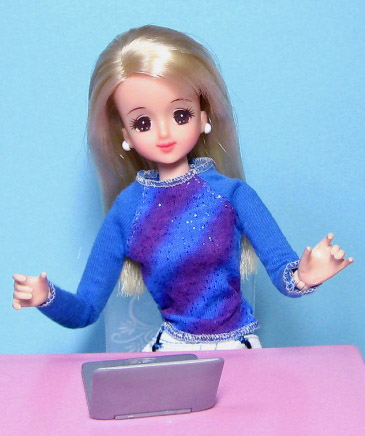 昭和ジェニー@バービー青&紫トップス 白ショートパンツ パソコン