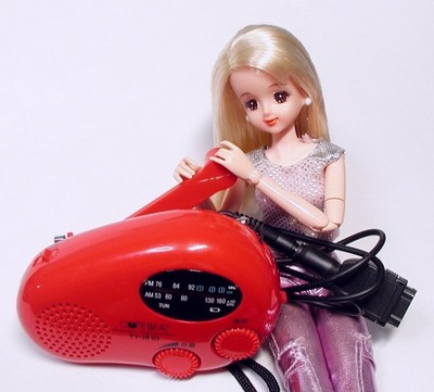 このラジオはハンドルを回して充電します(乾電池も使用可能)。