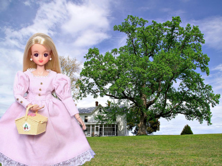 昭和ジェニー@キャッスル ピンクワンピース リーメント いちごちゃん家へようこそ ピクニックに行こう バスケット 丘の上の白い家・オークの木・春・緑