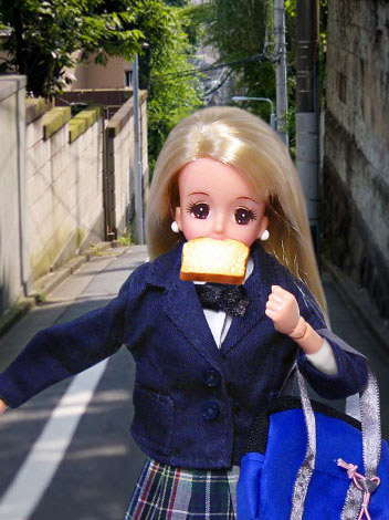 昔の少女漫画風にトーストをくわえて「遅刻遅刻~!」