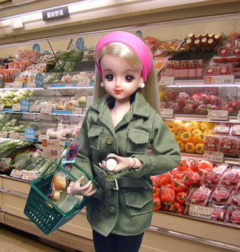 衣装はウェアセットW44、買い物かごと商品はリーメント「ぷちスーパー1・2」「スーパーでおかいもの」です。