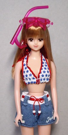すっかり諦めていた9月にスーパーの玩具売り場でこの水着と下の浴衣を買ったら思いがけずもらえたのです。