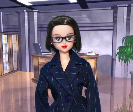 アゾンの眼鏡とコレクターズファッションのOLスーツで有能秘書風。