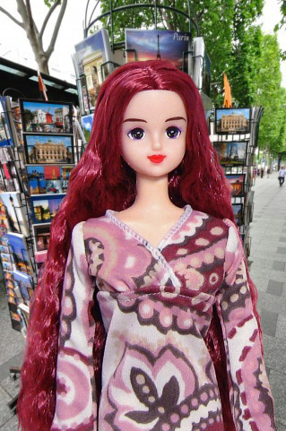 もう一人はキャッスルのワイン髪ナオミです。ハンドメイド通販のニットブラウスを着せました。