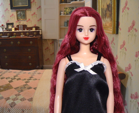 ワイン髪ナオミ@リーメント 着まわし30days サテンキャミワンピ 寝室・ベッド・部屋