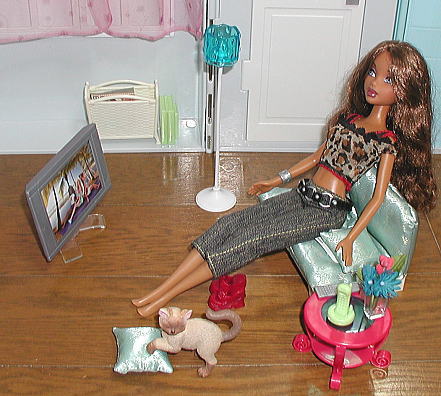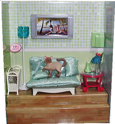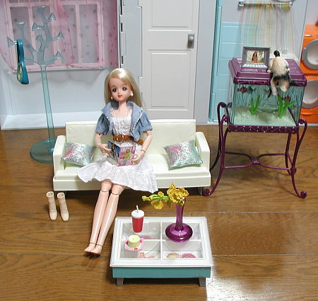 マディソン(マイシーン)とネコちゃん。ソファは小さめなのでリカちゃんにも良さそうです。