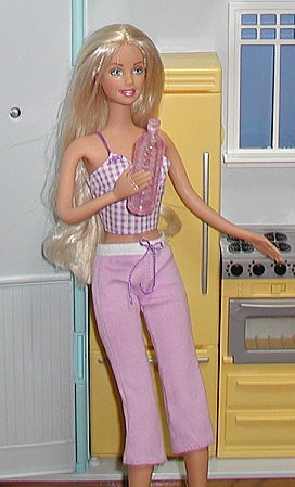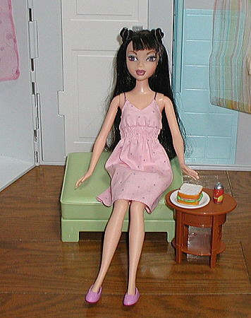 ノリーさん、寝ぼけ眼で朝食。この靴はバービーにはブカブカです。ジェニーにはぴったりでした。