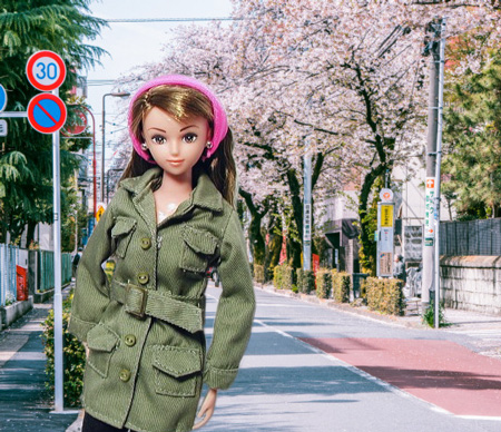 パフィー2@ウェアセットW44・ヘアバンド 桜のある通り・バス通り・桜並木・春