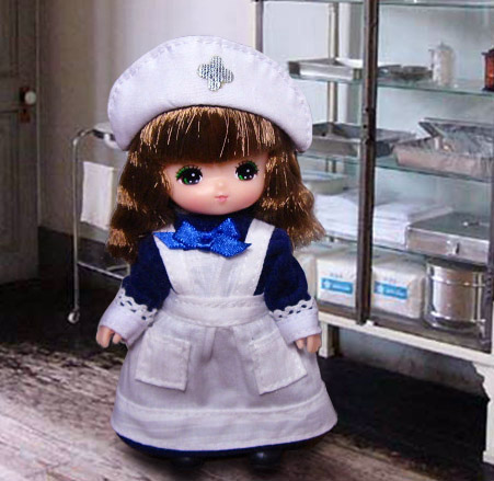 看護士志望という設定なのでプチジェニーのナース服を着せました。