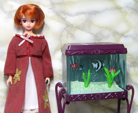 バービーの「ネコちゃんとリビングルーム」の水槽を久しぶりに登場させました。