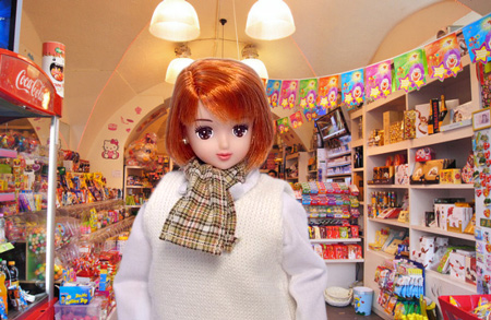 67ロベリア@ リンダガール・チアキデフォ服 チェックマフラー 白ベスト+ブラウス お菓子屋・キャンディショップ・店舗