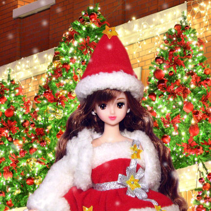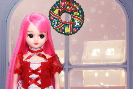 クリスマス2013 その2 教室リカちゃん・ファイヤーピンク@LW-17 てんしのクリスマスセット リース ショーウインドウ・窓・装飾・雪