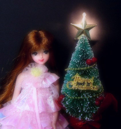 深夜、清らかな乙女(?)がツリーの星に願いをかけています。
