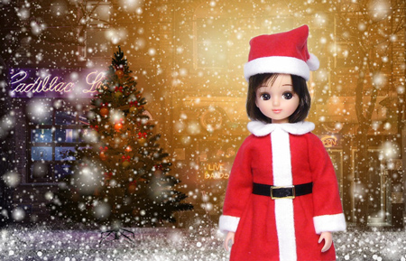 クリスマス2018 その2 女子美リカちゃん@絵縫工房サンタ服・帽子 クリスマスツリー・雪・街
