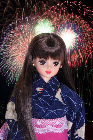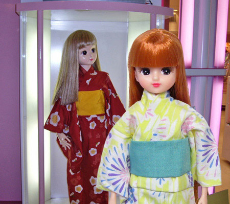 入り口にあった浴衣姿の等身大リカちゃんとなんちゃって2ショット(合成)です。