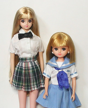 さて、そろそろ衣替えということでジェニーとリカちゃんにも夏服になってもらいました。ジェニーの制服は昨年の「ウェアセットW19」、リカちゃんの制服は今年2月に発売された「シーズンイベントドレス SE-73 たのしいがっこうセット」です。