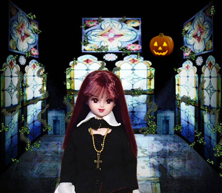 ハロウィン2015 スーパーウェディングリカちゃん@マジカルプリンセス+絵縫工房ゴスロリ風ワンピース 月と柱・月明かり