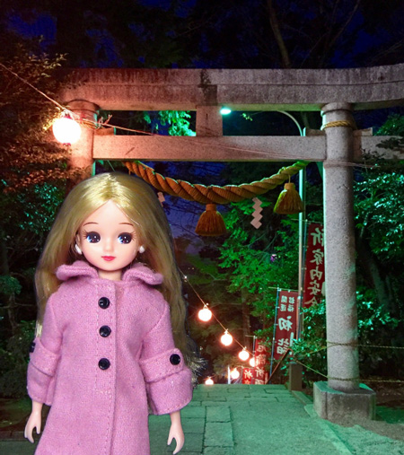 大晦日2016 スーパーウェディングリカちゃん@リーメント 着てみたいドーリーファッション ピンクコート 八幡神社の鳥居 初詣