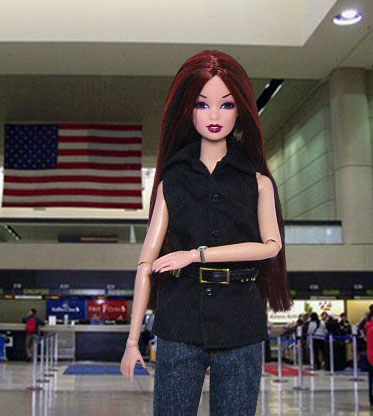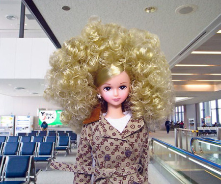 ドレスキャンプジェニーの頭頂部の髪が片方だけ盛り上がっていたのでスプレーで直したついでにジャケットとワンピースを脱がせてトップスを着せました。