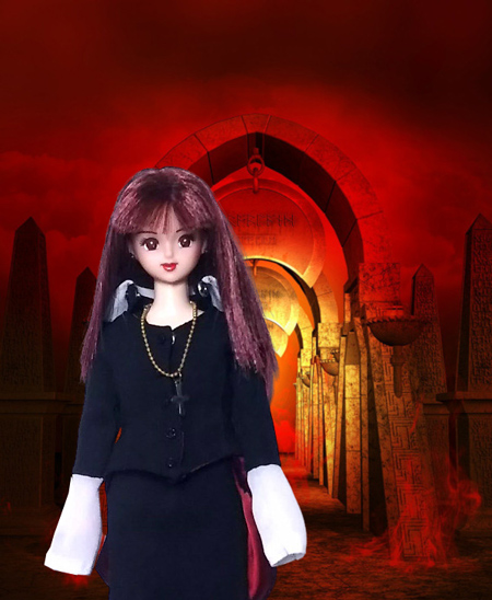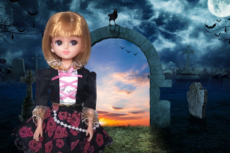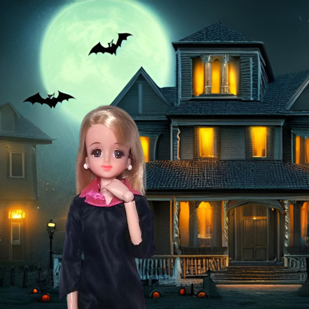 魔女屋敷の前ではジェニー魔女が地獄の使者を待ちわびています。