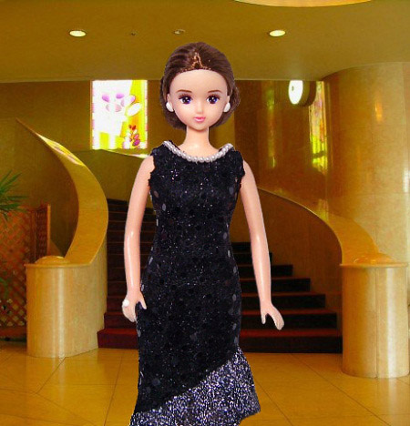 桜子@ミスジェニー黒ワンピース 左に曲がっている階段