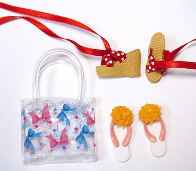 ビニールバッグ・ウェッジソールサンダル・ビーチサンダルのセット。
