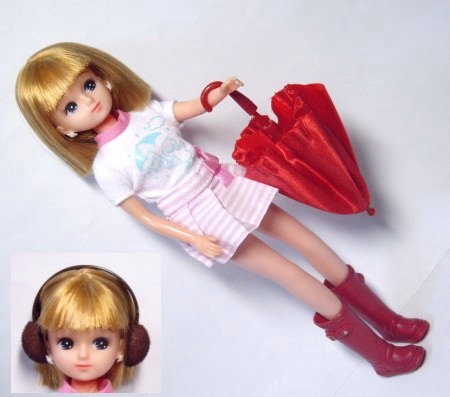 2.の傘&レインシューズ、6.のイヤーウォーマー モデル=リカちゃん