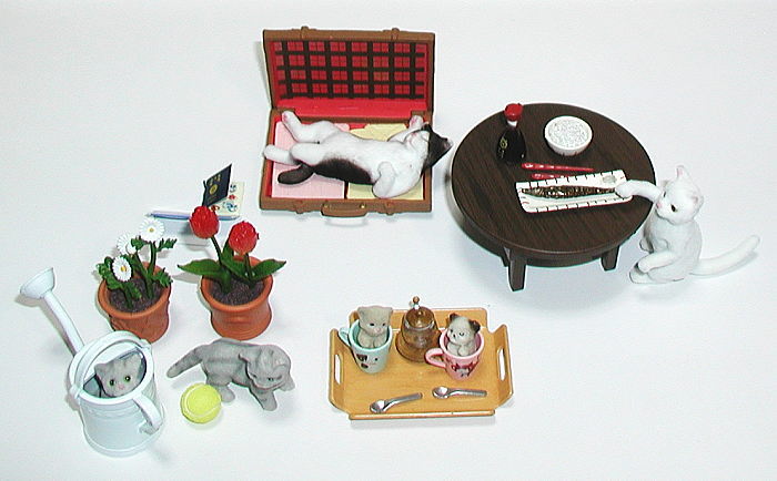 (クリックで大きく表示されます)12日に発売されたリーメントの「ぷちねこ日記」1~4です。猫が可愛いだけでなく小物も充実しています。