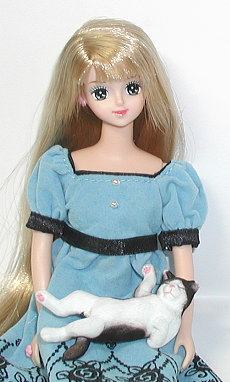 (クリックで大きく表示されます)12日に発売されたリーメントの「ぷちねこ日記」1~4です。猫が可愛いだけでなく小物も充実しています。 4.の猫をドール(あやの)の膝に乗せるとこんな感じです。