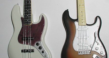 1.'70s ストラトキャスター (3color Sunburst) 全長約12cm2.'62 ジャズ ベース(Olympic White) 全長約14.5cmアコースティックギター(全長約16.5cm)は2000年カレンダーガール・アルゼンチンタンゴのものです。